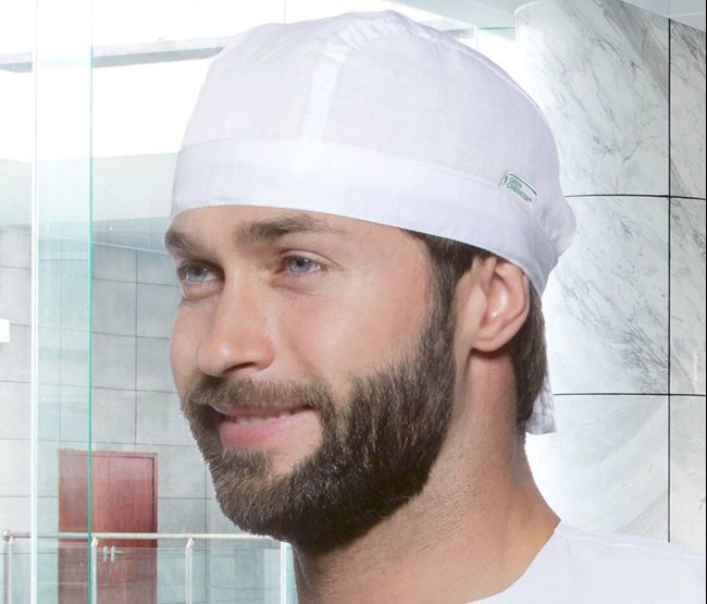 Suitable for medicine, care, wellness, cosmetics, cleaning activities. Washable at 95°. To be tied in the neck.