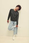 Lichtgewicht dames sweater van ongeborsteld katoen met raglan mouwen.